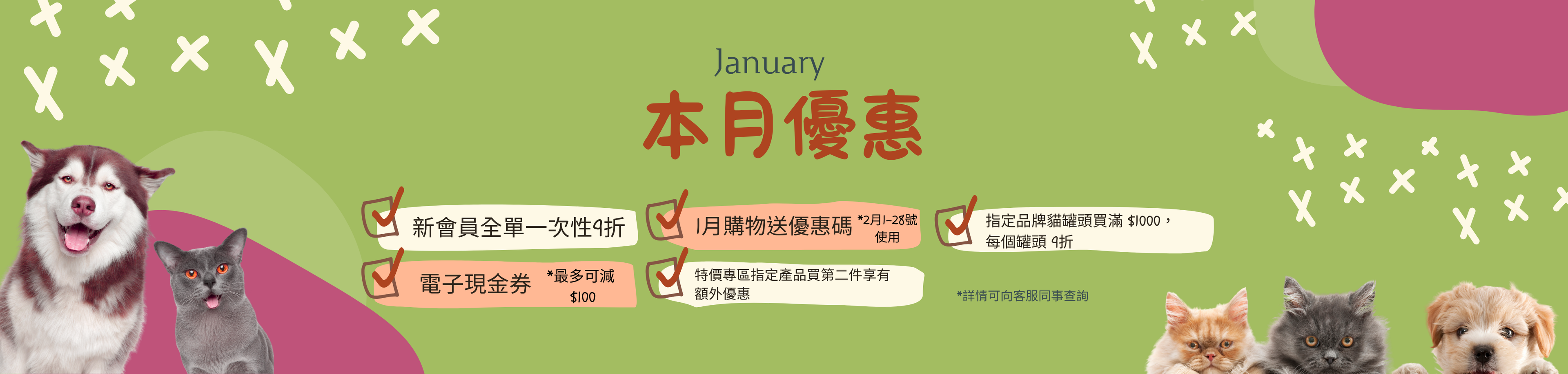 我們寵物用品店有4個會員優惠: