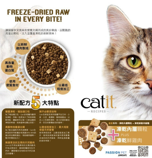 Catit | Recipes 凍乾内層+鮮雞肉室内貓乾糧 *送 Meow Mix 杯裝貓濕糧 78g x1 (味道隨機)