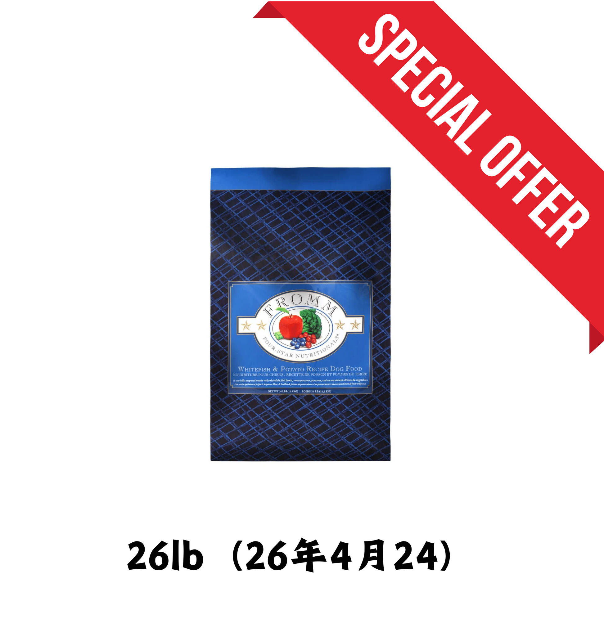 26年4月24 | Fromm | 白魚+馬鈴薯+蔬菜狗乾糧 26lb *送 Stella 潔齒骨 大型犬 23.2oz x1