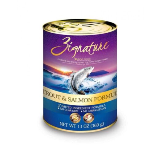 Zignature | 無穀物鱒魚+三文魚狗罐頭 13oz